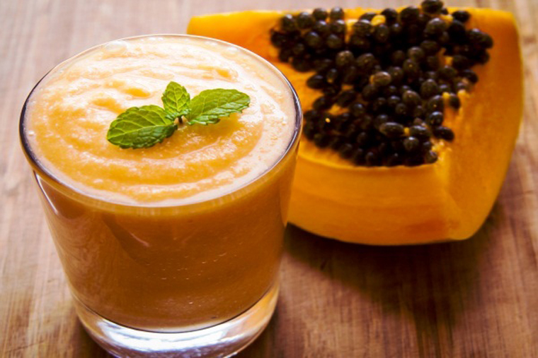 - Sinh tố đu đủ, mật ong và chanh: Đu đủ giàu protein và papain giúp bé có hệ tiêu hóa khỏe mạnh, ngăn ngừa táo bón. Mật ong giúp kháng khuẩn, kháng viêm, tăng cường sức đề kháng và hệ miễn dịch cho con. Chanh giàu vitamin C giúp bé có sức đề kháng cao hơn. Vì loại sinh tố này có mật ong nên mẹ lưu ý không nên cho bé dưới 1 tuổi dùng nhé.